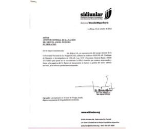 En la nota elevada a la Auditoria General de la Nación, órgano con rango constitucional del Congreso de la Nación que promueve el uso eficiente, económico y eficaz de los recursos públicos, se adjuntó la presentación de la secretaria General del SIDIUNLaR, Gabriela Aguirre, ante la máxima autoridad de la Casa de Estudios en la cual puntualiza todas las demandas que no han sido respondidas ni tampoco resueltas.