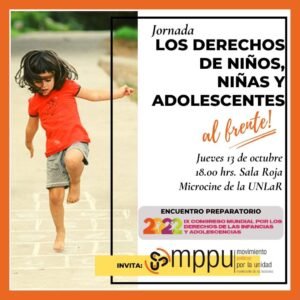 Desde el Movimiento Político por la Unidad invitan a toda la comunidad a formar parte de la jornada preparatoria para el IX Congreso Mundial de los Derechos de las Infancias y Adolescencias 2022. El mismo se realizará este jueves 13, a las 18:30, en la Sala Azul de Microcine de la UNLaR.
