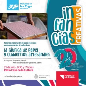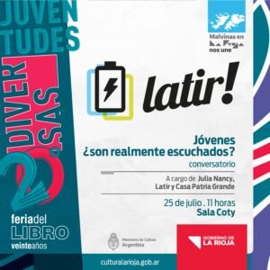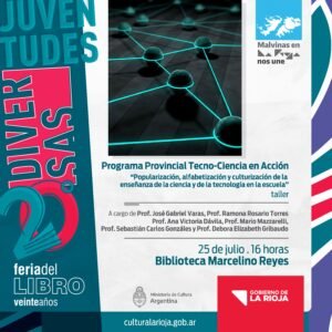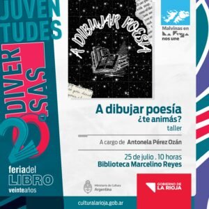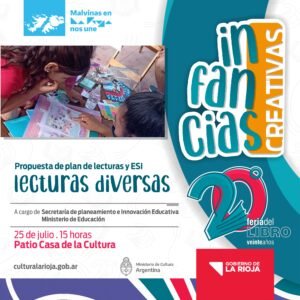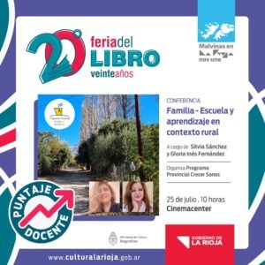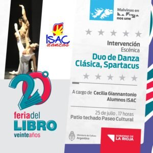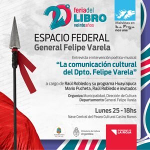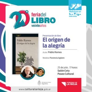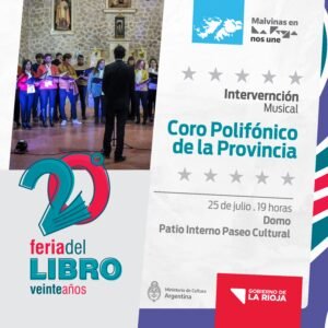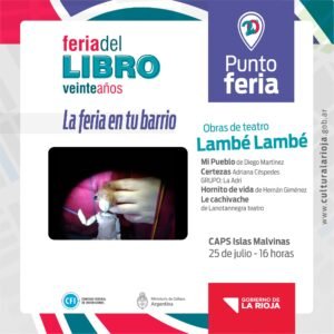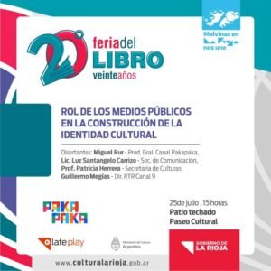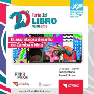 El Gobierno de La Rioja, celebra los 20 años de la Feria del Libro, de manera enteramente presencial del 16 al 30 de julio con una agenda descentralizada, democrática y participativa bajo el lema «Histórica, popular, federal» con presentaciones de libros, talleres, conversatorios, espectáculos, Punto Feria en barrios, encuentros y acciones en bibliotecas y los tradicionales espacios destinados a las juventudes, a las infancias y a los departamentos.