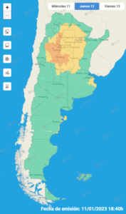 Para el viernes 13 de enero, en cambio, no rige de momento ningún tipo de alerta para ninguna de las provincias de la Argentina.
