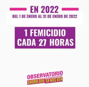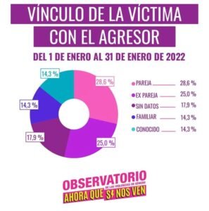 Asimismo, el informe marca que en el primer mes del 2022, al igual que en todo 2021, la mayoría de los casos, el 60 por ciento, ocurrieron en la vivienda de la víctima que, en muchos casos, comparte con el agresor. “De todas maneras, no hay que perder de vista que el 28,6% de los femicidios en enero tuvieron lugar en la vía pública, lo cual evidencia la impunidad y el poder con el que actúan los agresores, quienes creen que están avalados para ejercer violencia a la posible vista de todos y todas. En este sentido, debemos apelar al compromiso del Estado, pero también de la sociedad en general”, sostiene el texto.
