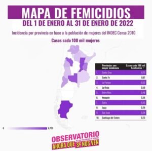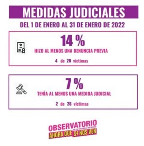 Desde el Observatorio indicaron que los datos se obtuvieron a partir de un análisis de medios de comunicación gráficos y digitales de todo el país en el mes de enero. De acuerdo a los datos obtenidos, se registró casi la misma cantidad de femicidios que de intentos. “Los intentos son parte de un proceso de violencia que por distintas circunstancias no llegaron a la muerte, por eso son casos en los que se debe hacer foco desde el Estado, que tiene la responsabilidad de proteger a esas mujeres en esta oportunidad”, se manifiesta en el comunicado emitido por la organización ‘Ahora Que Sí Nos Ven’.