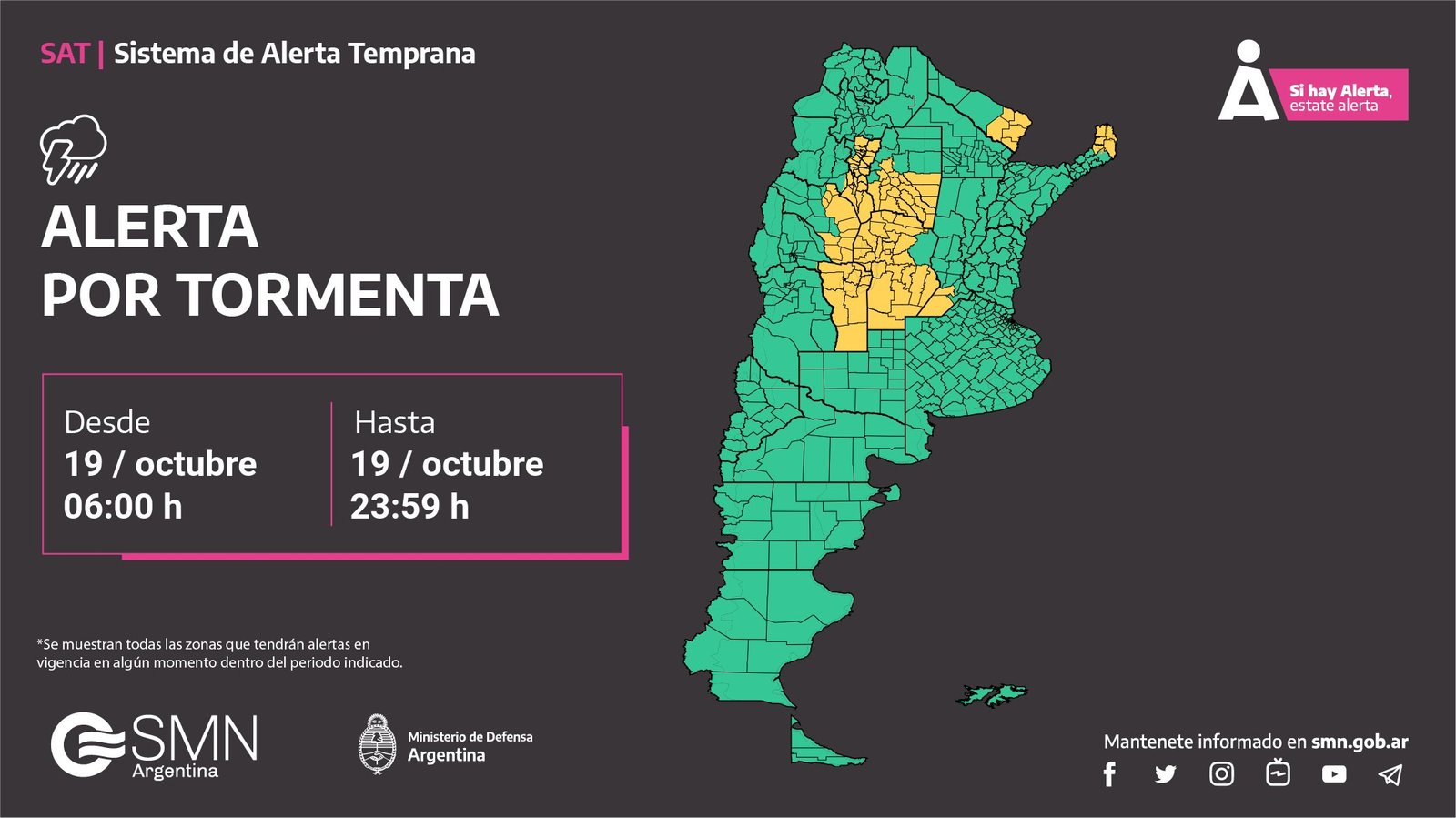 Alerta por tormenta y posible caída de granizo