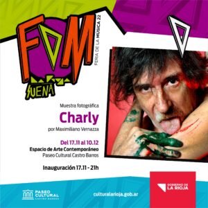 Muestra fotográfica “Charly”, de Maximiliano Vernazza. Homenaje a los 70 años de Charly García. Puede visitarse de lunes a domingo, 9 a 21 horas. O solicitar visita guiada al correo d.artesvisualeslarioja@gmail.com