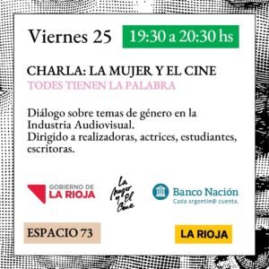 La primer propuesta es la Muestra federal: “La mujer y el cine”. que contará con charlas, encuentros y proyecciones de películas realizadas por mujeres. Desde el 24 al 27 de noviembre en Espacio 73 y el Paseo Cultural Castro Barros. La entrada es libre y gratuita.