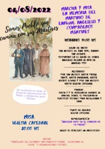 El jueves 4 de agosto se conmemora un nuevo aniversario del asesinato del hoy beato, Enrique Angelelli. Desde la diócesis de la provincia, las parroquias del Decanato San Francisco Solano, la Secretaría de Derechos Humanos y organizaciones sociales coordinan una marcha y misa para mantener viva su memoria, bajo el lema “Somos pueblos que caminan con sus mártires”.