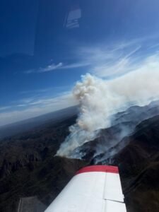Más de 160 personas despliegan diversas tareas contra el incendio forestal en el departamento Rosario Vera Peñaloza, en el sur provincial. El fuego se mantiene activo en una sola área del perímetro, en una sierra de difícil acceso. Aún no se puede determinar la cantidad de hectáreas afectadas.