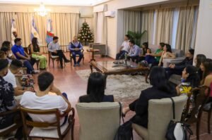 Autoridades gubernamentales se reunieron con jóvenes riojanos que participaron del trayecto formativo impulsado por el Consejo Federal de Inversiones (CFI). También estuvieron presentes los integrantes del proyecto ganador de estas jornadas regionales del CFI, entre ellos, Guillermo Pereyra.