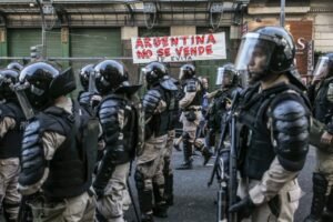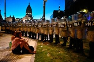 La ministra de Seguridad, Patricia Bullrich, montó otro circo intimidatorio y mandó a la Preferctura, la Gendarmería y la Policía Federal a reprimir y detener manifestantes, no iba a resignar protagonismo y por varias horas logró que la tensión que se vivió durante todo el miércoles dentro de la Cámara de Diputados se trasladara hacia la calle. Más que un operativo, la ministra de Seguridad desplegó en las inmediaciones del Congreso un circo represivo. La Prefectura, la Gendarmería y la Policía Federal se enfrentaron deliberada y forzosamente contra un grupo de militantes y agrupaciones de izquierda —unas siete mil personas, según los organizadores— que se concentraron para repudiar el tratamiento del proyecto de Ley ómnibus.
