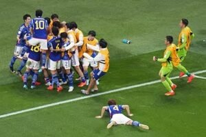 Por el mismo Grupo E, Japón dio la segunda sorpresa mundialista. Venció 2-1 a Alemania. Los «teutones» marcaron el ritmo y dominaron en el primer tiempo, cuando marcaron de penal, mediante Gündoğan. Sin embargo, Japón no perdió la actitud, y los ingresos de Doan y Asano, cambiaron la cara japonesa, porque se encargaron de anotar los dos goles con los que en 10 minutos, los asiáticos le cambiaron la historia a los europeos. Gran triunfo de Japón.