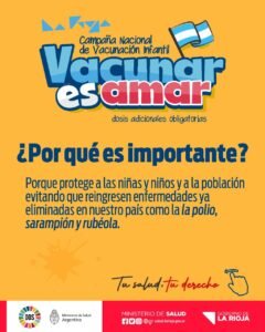 Paralelamente con el lanzamiento nacional, en La Rioja se comenzó a vacunar contra el sarampión, rubeola, papera y la poliomielitis. La campaña se extenderá hasta el 13 de noviembre y está destinada a niños y niñas de entre 13 meses y cuatro años, inclusive.