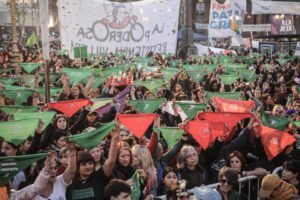 Una de las consignas principales de la marcha –con réplicas en todo el país– es «por el aborto seguro y gratuito, por la ESI y por vidas dignas». «Sobran las razones para movilizarnos y apostamos a la unidad de acción, amplia y diversa, para enfrentar a las derechas, al ajuste y el FMI»: así, con la otra consigna central, comienza el documento leído por Liliana Daunes sobre el escenario. «Construimos consignas que son la afirmación de las vidas que deseamos contra unas derechas que ponen como blanco de ataque al movimiento feminista y LGTBQI+, al derecho al aborto, la salud y la educación pública y la educación sexual integral, los derechos humanos y los bienes comunes», plantea el texto. «Tomamos las calles porque sabemos que son nuestro espacio de lucha, por lo que hemos conseguido y por lo que nos queda por lograr, porque no daremos ni un paso atrás». Tras el discurso hay un pañuelazo.