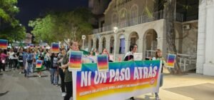 Mujeres de diversos espacios se congregaron y consensuaron que: «a 40 años de la restitución del sistema democrático en nuestro país y en el día de acción global por el acceso al aborto legal y seguro, nos encontramos en las calles para decir que nuestros derechos y existencias no se negocian ni están en discusión. Las mujeres y diversidades alzamos nuestras voces para decir NI UN PASO ATRÁS”.