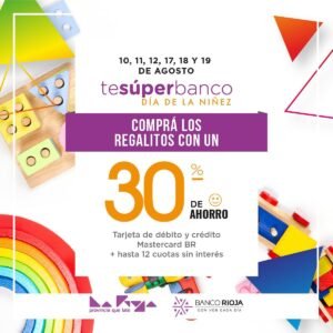 Banco Rioja continúa sumando promociones con descuentos y opciones de financiación en cuotas sin interés, para la compra de los regalos por el Día de la Niñez. El tope de reintegro acumulado con ambas tarjetas es de 5.000 pesos.