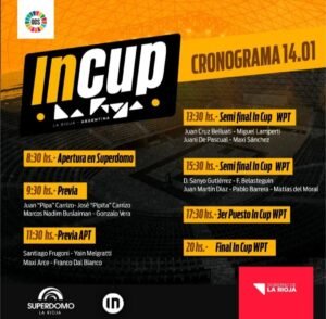 El partido por el 3° puesto de In Cup World Padel Tour será a las 17.30, en tanto que la final de la In Cup WPT, está programada para las 20.00.
