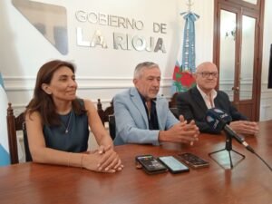 El secretario de la Gobernación Armando Molina, recibió al rector y a la vicerrectora de la Universidad Nacional de La Rioja, Daniel Quiroga y María Corzo, respectivamente, con el objetivo de avanzar en el proyecto de continuidad de la calle Ejército Argentino, a través del predio universitario.