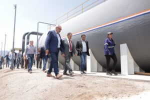 El gobernador Ricardo Quintela, luego de recorrer e inaugurar las instalaciones de la planta de tratamiento de efluentes cloacales, definió la obra como “una inversión importantísima”, que se gestiona a través del Ministerio de Agua y Energía. “Una obra de más de 175 millones de pesos”, señaló Quintela, al tiempo que sostuvo: “Esto permitirá que la cabecera del departamento Juan Facundo Quiroga se pueda conectar a las cloacas. Se hace un tratamiento de las aguas que salen y pueden servir para un esquema productivo, que el intendente y los productores, lo pueden armar en el departamento”.