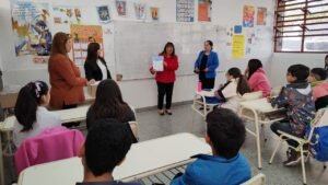 En este contexto, la secretaria de Gestión Educativa, Zoraída Rodríguez, visitó a las y los estudiantes de la escuela N°409 ubicada en la zona Norte de la Capital, junto a la directora de Evaluación de la Calidad Educativa, Silvia Romero y la supervisora zonal, Evangelina Gómez, quienes fueron recibidas por la directora de la institución Ángela Guzmán.