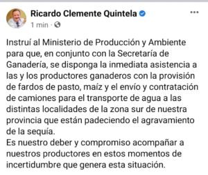 El primer mandatario puntualizó que la ayuda será para las y los productores ganaderos de los departamentos del sur provincial.
