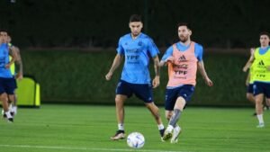 En estos días de entrenamiento, Scaloni trabajó en distintas variantes, por lo que Argentina podría alinear a: Martínez; Molina, Martínez, Otamendi, Acuña; De Paul, Rodríguez, Mac Allister; Messi; Di María, Martínez.
