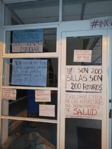 Por otra parte, la decana de Salud, Natacha Minué, declaró que, ante el reclamo para que se baje el porcentaje de calificaciones en el examen de ingreso, “el Consejo Departamental decidió que el nivel para aprobar sea del 50%”. Además, aseguró el inicio de clases para quienes superaron la instancia de examen y pidió no entorpecer el normal funcionamiento académico.