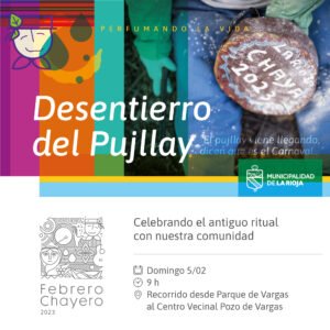 El cierre de la semana será el domingo 05 a las 9 horas, en el Centro Vecinal Pozo de Vargas, con el tradicional Desentierro del Pujllay. Previo a la ceremonia de desentierro, se realizará una marcha chayera, con cajas y coplas, desde Parque de Vargas, hasta al Centro Vecinal Pozo de Vargas, dando inicio al carnaval con la celebración del antiguo rito.